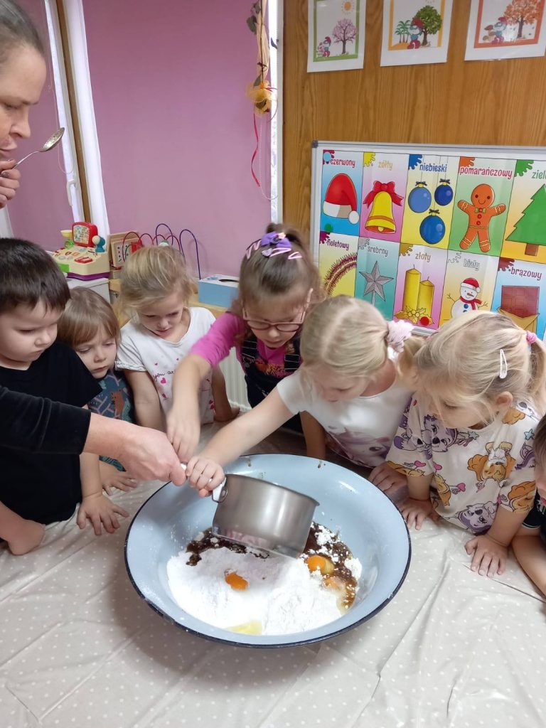 W ramach Dnia Cytrusów przedszkolaki poznawały różne rodzaje owoców, ich zapachy, smaki i wartości zdrowotne. Wspólne pieczenie pierników pozwoliło na rozwój sprawności manualnej oraz uczyło pracy w grupie.
